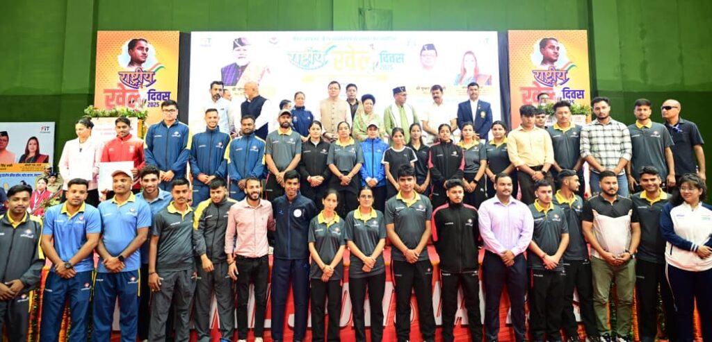 देहरादून। शुक्रवार को मेजर ध्यानचंद जयंती के अवसर पर बहुउद्देश्यी क्रीड़ा हाल परेड ग्राउंड में आयोजित राष्ट्रीय खेल दिवस – 2025, समारोह को संबोधित करते हुए, मुख्यमंत्री श्री पुष्कर सिंह धामी ने कहा कि खेल और खेल भावना समाज को ऊर्जा, अनुशासन और प्रेरणा प्रदान करती है। उन्होंने कहा कि मेजर ध्यानचंद ने अपनी स्टिक के जादू से पूरी दुनिया को भारत की खेल शक्ति से परिचित कराया। उन्होंने हिटलर तक को ये बता दिया कि देश भक्ति आखिर क्या होती है। उन्हीं के आदर्शों पर चलकर आज प्रधानमंत्री नरेंद्र मोदी के नेतृत्व में हमारा देश भी एक वैश्विक खेल शक्ति बन रहा है, इसमें उत्तराखंड भी अपनी भूमिका निभाने के लिए कमर कस चुका है। उन्होंने कहा कि प्रधानमंत्री “खेलो इंडिया” और “फिट इंडिया मूवमेंट” जैसे कार्यक्रमों के माध्यम से देश में खेल संस्कृति को प्रोत्साहित करने का प्रयास कर रहे हैं। आज हमारे खिलाड़ी केवल किसी प्रतियोगिता में भाग लेने के लिए ही नहीं खेलते बल्कि जीतने और तिरंगा लहराने के संकल्प के साथ मैदान में उतरते हैं। हाल के वर्षों के उदाहरण देखें तो जहां, 2020 के टोक्यो ओलंपिक में भाला फेंक में नीरज चोपड़ा ने स्वर्ण पदक जीतकर इतिहास रचा वहीं पुरुष हॉकी टीम ने 41 वर्षों बाद कांस्य पदक हासिल किया। इसी तरह पेरिस ओलंपिक में नीरज चोपड़ा ने रजत पदक, मनु भाकर ने दो कांस्य पदक, स्वप्निल कुसले व अमन सेहरावत ने एक- एक कांस्य पदक जीतकर और पुरुष हॉकी टीम ने लगातार अपना दूसरा कांस्य पदक जीतकर भारत का गौरव बढ़ाया। हाल ही में हुई एशियाई एथलेटिक्स चैम्पियनशिप में ज्योति याराज्जी, गुलवीर सिंह और अविनाश सबले ने स्वर्ण पदक जीतकर भारत का परचम बुलंद किया है। प्रधानमंत्री नरेंद्र मोदी ने खेल बजट तीन गुना बढ़ा दिया है।